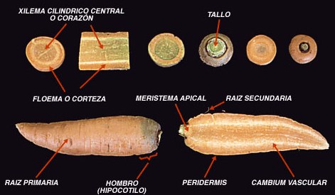 La zanahoria pertenece a la familia de las Umbelíferas, también denominadas Apiáceas. Es la hortaliza más importante y de mayor consumo de las pertenecientes a dicha familia, que cuenta con cerca de 250 géneros y más de 2.500 especies, la mayoría plantas propias de las estaciones frías. Se reconocen por su abundante contenido en sustancias aromáticas y, por lo general, son las semillas las que contienen los aceites esenciales responsables de su aroma y sabor. Algunas especies de esta familia contienen furanocumarinas, compuestos que pueden causar dermatitis. Sin embargo, no todos los individuos son sensibles. La respuesta de la dermatitis se intensifica con la exposición a la luz ultravioleta y puede dar lugar a la decoloración de la piel. |