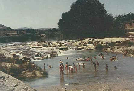 El magnífico Azud de Castelserás se trataba de una presa en la que los castelseranos y visitantes podían disfrutar no sólo de los baños, como se puede apreciar en la imagen, si no también de hidromasajes naturales favorecidos por las pequeñas cascadas que se producían entre las erosionadas rocas. Actualmente no existe debido a las discutibles necesidades de optimizar los recursos hídricos.