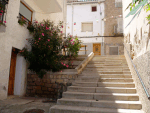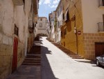 C/ Loscos, desde la calle Mayor. La casa del fondo con la técnica de construcción tradicional de la zona